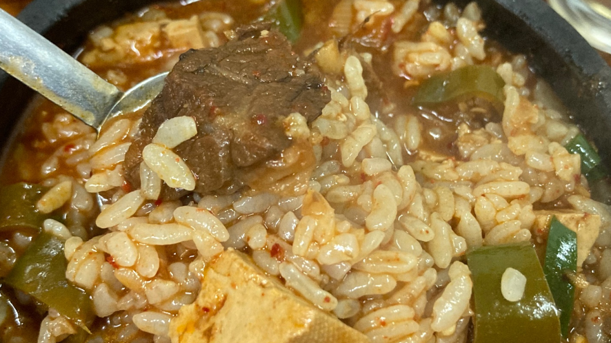 다음으로, 소고기 된장찌개를 추천해드립니다. 이 곳에서는 된장찌개가 고기보다 더 유명하다고 하는데, 짙은 색상의 된장찌개는 고소하고 진한 맛이 일품입니다. 단, 짠 맛이 강하므로 공기밥과 함께 먹으면 더욱 맛있게 즐길 수 있습니다.