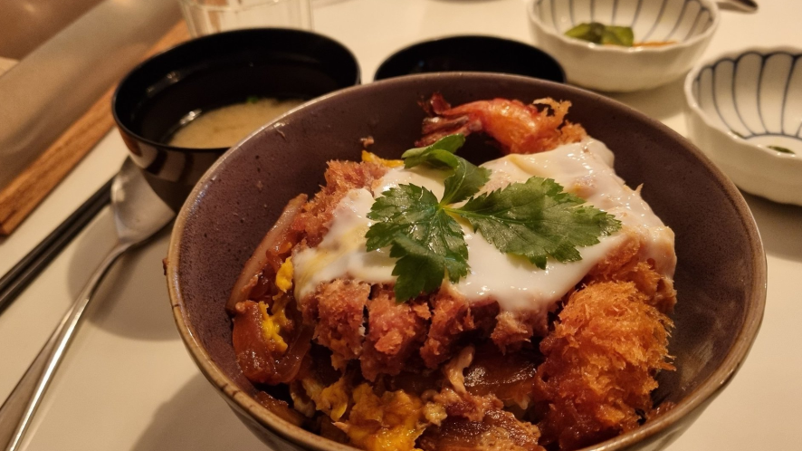 메뉴는 믹스가츠동와 가라아게를 시켰습니다. 장국이 나올 때 숟가락을 담그면 넘어진다는 설명도 함께 들었습니다. 가츠동의 돈까스는 두툼하고 짭짤하니 괜찮았습니다. 새우는 크지 않았지만, 종로의 물가 생각하면 나쁘지 않은 크기였습니다. 가라아게는 그냥 일반 가라아게였습니다. 둘이서 나눠서 먹기에 좋았습니다.