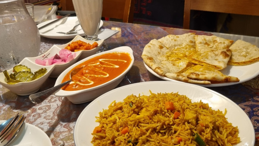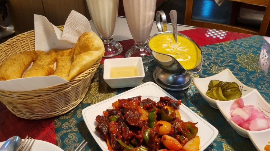 주문한 메뉴는 '세트메뉴'였는데, 커리와 난, 샐러드, 샤박레라는 고기 튀김만두, 치킨볶음요리, 그리고 국수 등 다양한 음식을 즐길 수 있었습니다. 매운 음식을 좋아하는 저에게는 인도요리의 매운맛이 정말 인상적이었는데, 티벳음식은 조금 더 부드러운 맛과 향이 느껴져서 좋았습니다.