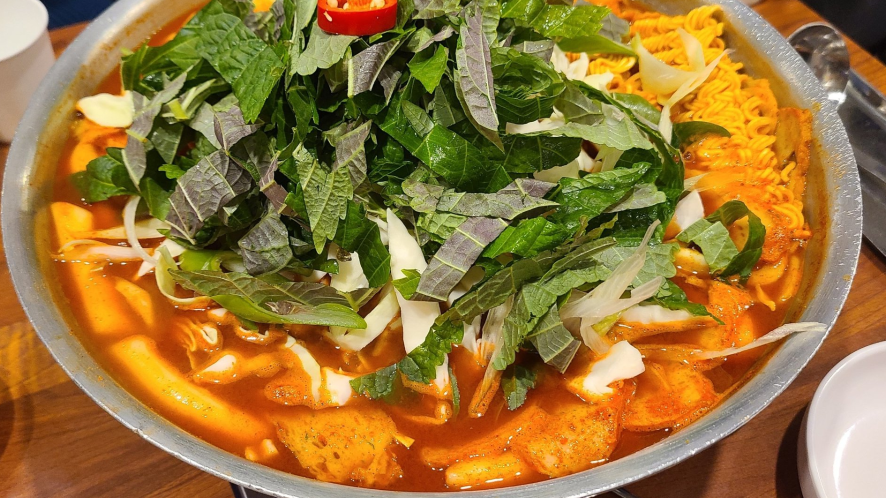 또보겠지떡볶이집은 즉석 떡볶이를 주문하면 떡, 어묵, 라면, 쫄면, 양배추, 깻잎, 파가 기본으로 들어가고 원하는 사리를 추가할 수 있어요. 저는 볶음밥을 좋아해서 볶음밥과 함께 “버갈”을 주문했어요. 버갈은 버터갈릭 감자튀김의 줄임말인데요, 이곳의 인기 메뉴 중 하나예요.