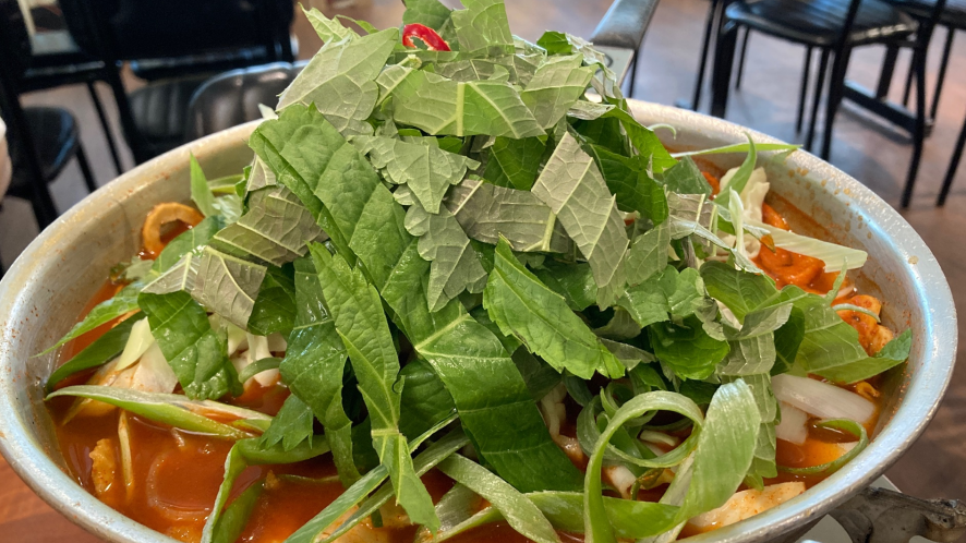음식이 나오기까지 조금 기다려야 했는데 그동안 환타를 마시며 대화를 나눴습니다. 환타는 한 병에 1천원인데 리필 가능해서 좋았어요. 음식이 나오자마자 풍기는 향과 보글보글 소리에 입안이 축축해졌습니다.