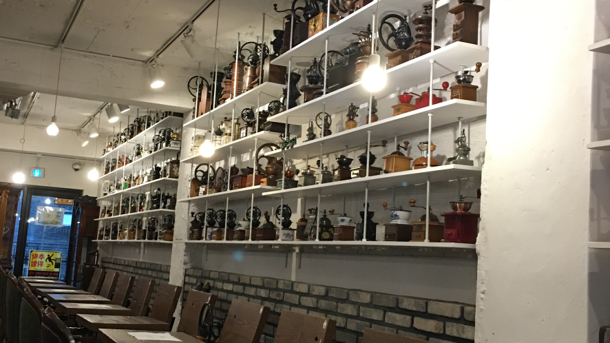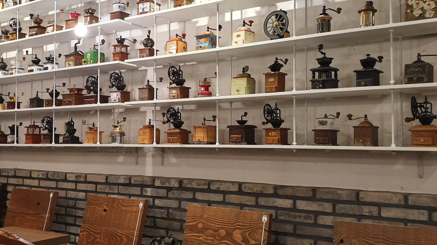 카페 안에서 사진을 찍으면서 구경하는 재미도 쏠쏠했습니다. 벽면의 커피 그라인더들은 모양과 크기가 다양해서 보는 것만으로도 재미있었습니다. 앤티크 소품들도 예전의 추억을 떠올리게 해주었습니다. 인테리어가 고전적이면서도 세련된 반쥴의 분위기가 너무 좋았습니다.