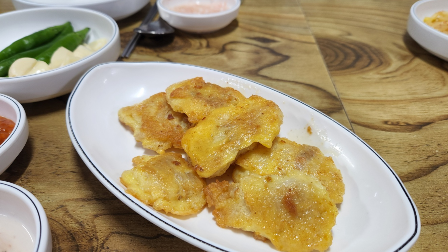 감자탕은 뼈에 살이 많고 국물이 얼큰하고 진하고, 동태전은 즉석에서 바로 부쳐서 바삭바삭하고 고소합니다. 막걸리와 함께 먹으면 최고의 안주입니다. 무김치와 배추말이김치도 신선하고 새콤달콤해서 입맛을 돋우고, 국물과 고기의 기름기를 잡아줍니다.