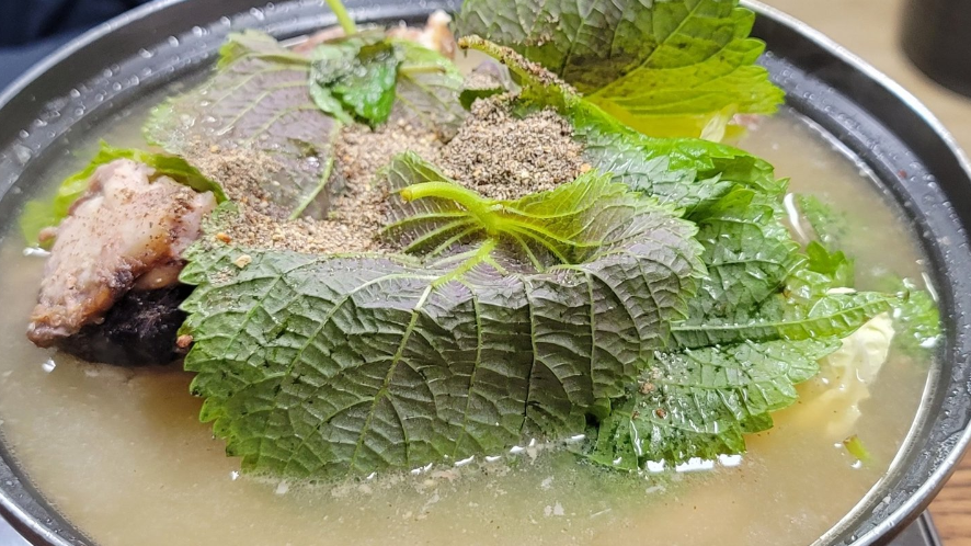 서비스로 나오는 감자탕도 정말 맛있었어요. 감자탕은 약간 매운 편인데, 그래서 더 시원하게 들어가더라고요. 감자와 돼지고기가 부드럽게 익어서 숟가락으로 쉽게 떼어낼 수 있었어요. 감자탕은 따로 주문할 수도 있으니, 보쌈만으로 부족하다면 추가로 시키셔도 좋을 것 같아요.