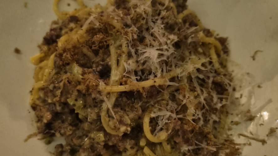 다음으로 라구 파스타를 맛보았습니다. 이것도 상당히 맛있었습니다. 파스타 면발은 적당히 살아있고, 라구 소스는 토마토와 고기의 풍미가 잘 배어 있었습니다. 그리고 치즈가 듬뿍 뿌려져 있어서 더욱 맛있었습니다.