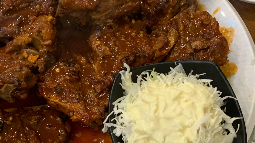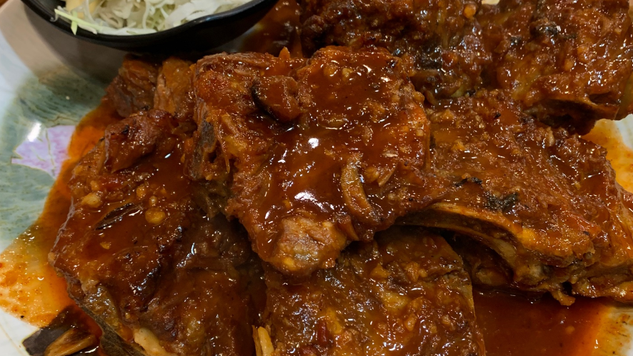 저희는 36,000원짜리 뼈구이 소자와 3,000원짜리 볶음밥을 주문했습니다. 뼈구이는 한 접시에 꽉 차게 담겨져서 나왔고, 볶음밥은 따로 나왔습니다. 서비스로 국물도 주셨는데요, 국물은 고기의 육즙과 양념이 우러나와 좋았습니다.