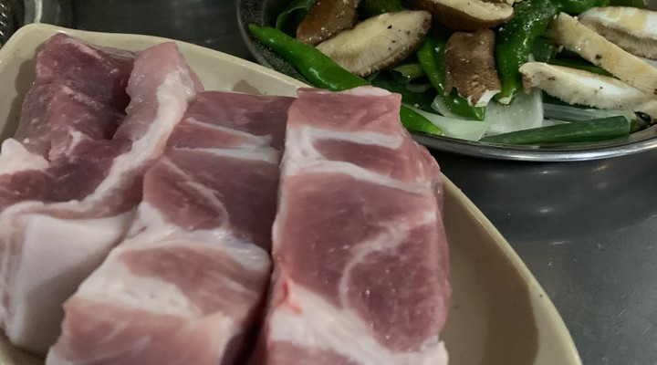 이곳은 투뿔목살 (200g)(16,000원), 특오겹살 (200g)(16,000원), 껍살 (250g)(18,000원), 정가브리(200g)(18,000원) 등의 메뉴를 제공하고 있습니다.