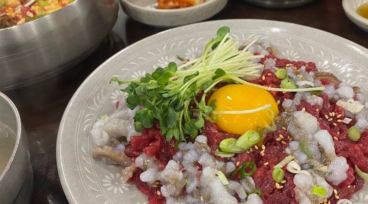 이곳은 육회 (200g)(15,000원), 산낙지탕탕이(15,000원), 육회물회(25,000원), 육사시미(28,000원), 육회낙지탕탕이(28,000원) 등의 메뉴를 제공하고 있습니다.