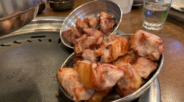 이곳은 통목살 (150g)(16,000원), 통삼겹살 (150g)(16,000원), 항정살 (150g)(18,000원), 투뿔채끝 (150g)(38,000원), 제육백반(8,000원) 등의 메뉴를 제공하고 있습니다.
