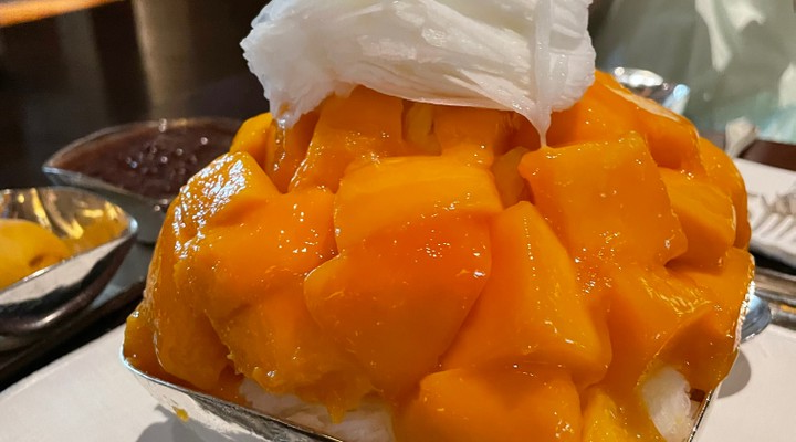 이곳은 애플망고빙수(64,000원), 에스프레소(18,000원), 카푸치노 (HOT)(19,500원), 그린티 라테(22,000원), 프레시 주스(20,000원) 등의 메뉴를 제공하고 있습니다.