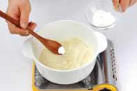3. 고구마와 물을 섞어 끓이면서 찹쌀가루로 농도를 맞추고 설탕을 넣어 맛을 낸다.c