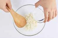 2. 뜨거운 밥에 배합초를 넣어서 밥알이 으깨지지 않게 고루 저어가면서 밥을 체온 정도로 식힌다.a