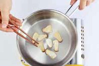 8. 새우는 껍질을 벗기고 등쪽 2~3마디에 있는 내장을 꼬챙이로 꺼내고 물에 헹궈 물기를 뺀 다음 기름을 두르고 볶는다.