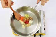 2. 쇠고기를 곱게 다지고 다진 양파와 마늘, 간장, 매실즙을 넣고 양념하여 달궈진 프라이팬에 볶는다.