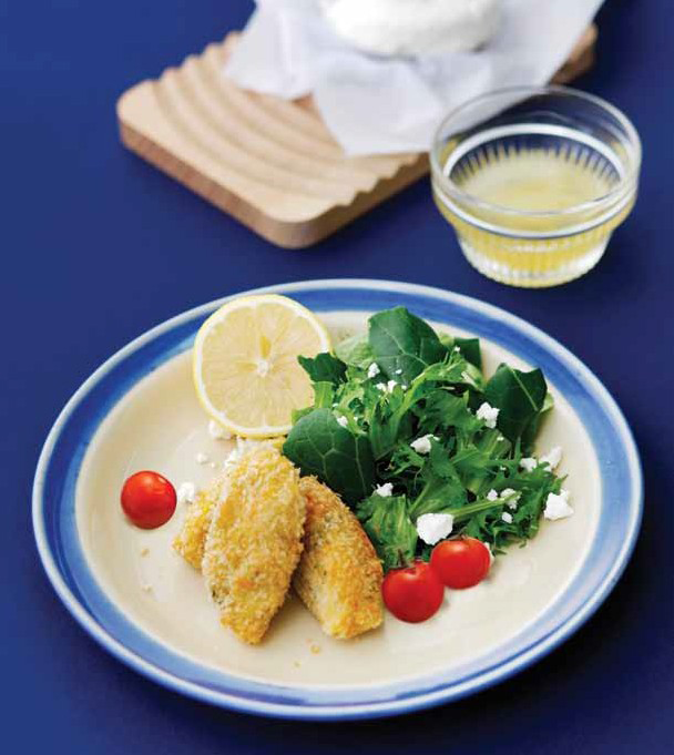 11. 튀긴 크로켓과 채소를 접시에 담은 다음 리코타치즈를 위에 뿌리 고 유자꿀 드레싱을 곁들인다.