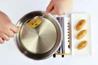 10. 180~200도의 기름에 크로켓을 돌려가며 노릇하게 튀기고 기름을 빼준다.c