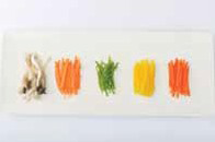 1. 노랑 파프리카, 빨강 파프리카, 청 고추와 당근은 5cm 길이로 가늘 게 채썬다.a