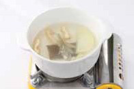 4. 육수를 낸 재료를 건져 내고 저염 간장과 감초액으로 간을 한 다음 한소끔 끓인다.