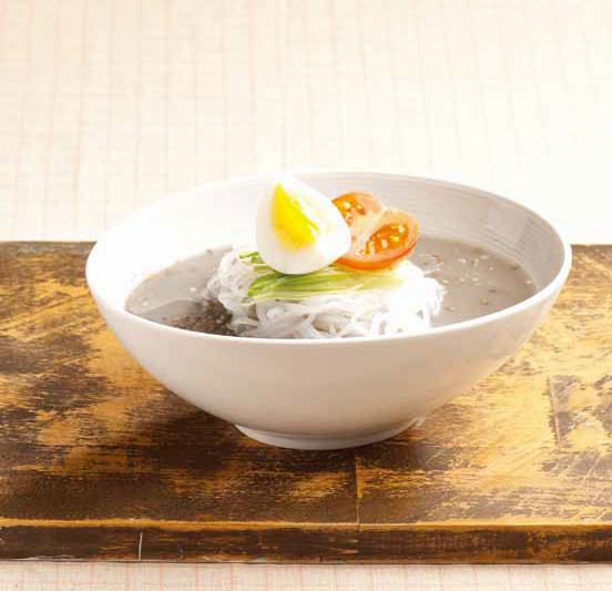 7. 살얼음이 낀 3의 콩물을 담고 오이와 토마토, 달걀을 고명으로 올려 완성 한다.