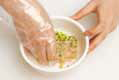 3. 다진 채소와 닭가슴살, 참기름, 저염간장을 섞어 만두소를 만든다.b