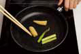 3. 가열된 팬에 버터를 녹이고 손질한 당근, 은행, 아스파라거스, 영콘을 볶 는다.b