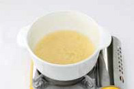 4. 홍합육수에 쿠스쿠스를 넣고 3분 정도 익히고, 8분 정도 약한 불에 서 뚜껑을 덮어 익힌다.b