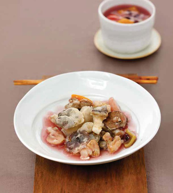 6. 찹쌀버섯탕수와 블루베리 소스 를 곁들인다.