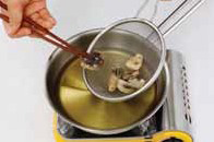 3. 튀김 팬에 기름을 붓고 180도의 온 도에서 버섯을 넣어 가라앉았다가 떠오르면 한번 저어주고 건져 기 름을 뺀다.b