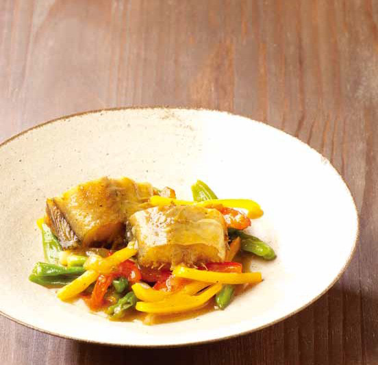 명태코다리 160g(1/2마리), 무 60g(1/10개), 양파 20g(1/8개), 꽈리고추 60g(6개), 홍피망 20g(1/5개), 황파프리카 20g(1/5개) 조림양념