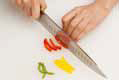 3. 대파, 청파프리카, 홍파프리카, 황파프리카를 채 썬다.b