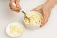 감자 50g(1/3개), 우유 20g(4작은술), 병아리콩 50g(3큰술), 모짜렐라 치즈 10g