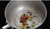 3. 돼지고기를 썰어 불린 쌀, 다진 야채와 함께 밥을 짓는다.