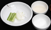 3. 양파, 오이는 채썰고 식초, 설탕, 소금을 넣고 초절임한다