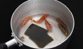 2. 냄비에 가시오가피, 대파, 다시마, 마늘, 건새우를 넣고 은근히 끓인 후 닭을 넣고 약 20분 정도 삶아 건진 뒤 살을 찢어둔다.