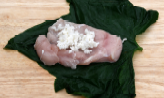 5. 데친 호박잎에 닭 가슴살을 올린다.