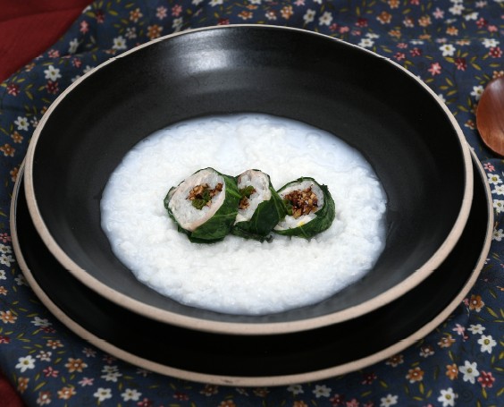 호박잎(5장), 닭고기(가슴살, 120g), 찹쌀(100g), 대추(3알),